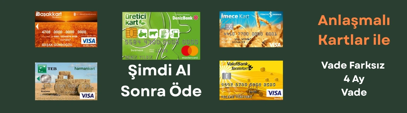 Başak Kart, Harman Kart, Üretici Kart, İmece Kart, Tarım Kart ile Peşin Fiyatına 3 / 4 Ay Vade